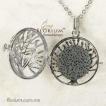 Difusor: Mide 3 cm de ancho y tiene un broche para abrir y cerrar que permite agregar el aceite esencial en la piedra volcánica.