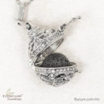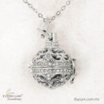 Difusor: Mide 2.5 cm de diámetro y tiene un broche para abrir y cerrar que permite agregar el aceite esencial en la piedra volcánica.