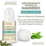 Desodorante natural de MAGNESIO libre de aluminio y parabenos en Roll-on con aceites esenciales puros. No contiene alcohol, bicarbonato de sodio ni fragancias sintéticas.